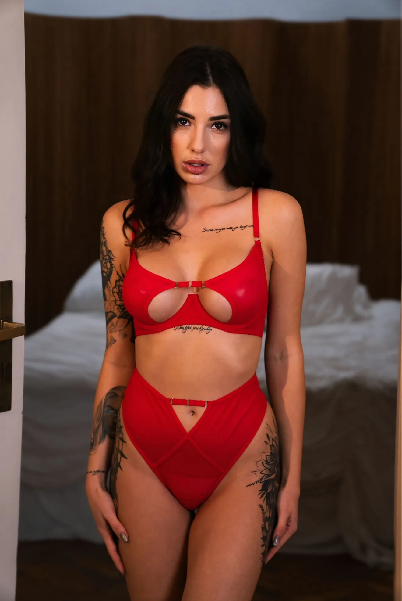Цей комплект жіночої білизни створений для максимального комфорту та виразного, сучасного силуету. Модель виконана з м’якої еластичної сітки , що приємно прилягає до шкіри та забезпечують ідеальну посадку. Ліф із фігурними вирізами та декоративними елементами підкреслює ніжну зону декольте, а високі трусики візуально видовжують ноги та формують красиву талію. Такий комплект стане чудовим вибором для романтичних вечорів, особливих подій або для того, щоб просто відчути себе впевненою та привабливою щодня. Підійде для жінок, які шукають сміливий дизайн, преміальні тканини та комфорт у кожному русі.